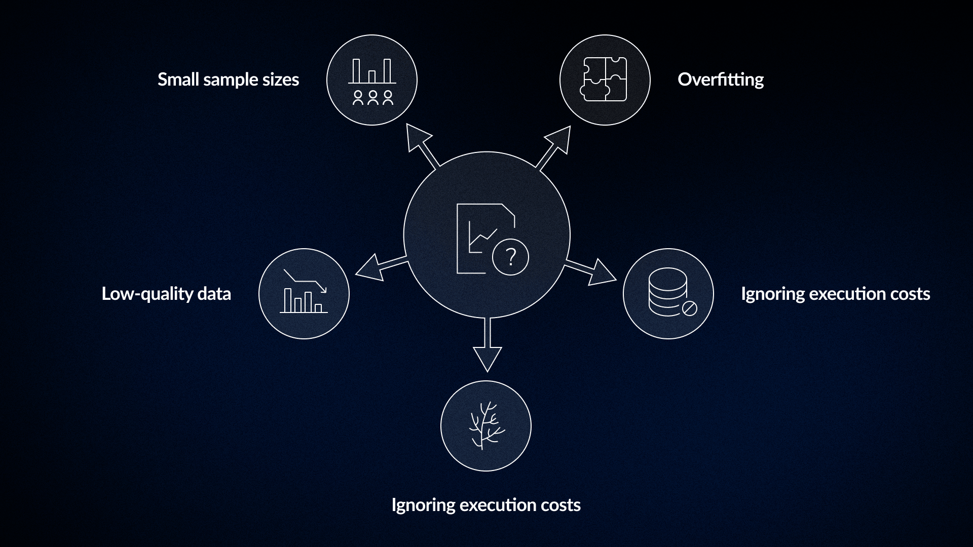 Misleading results often come from overfitting rules to a specific time period or ignoring commissions and slippage. Other common errors include using incomplete data, failing to account for delisted assets, and relying on small sample sizes.