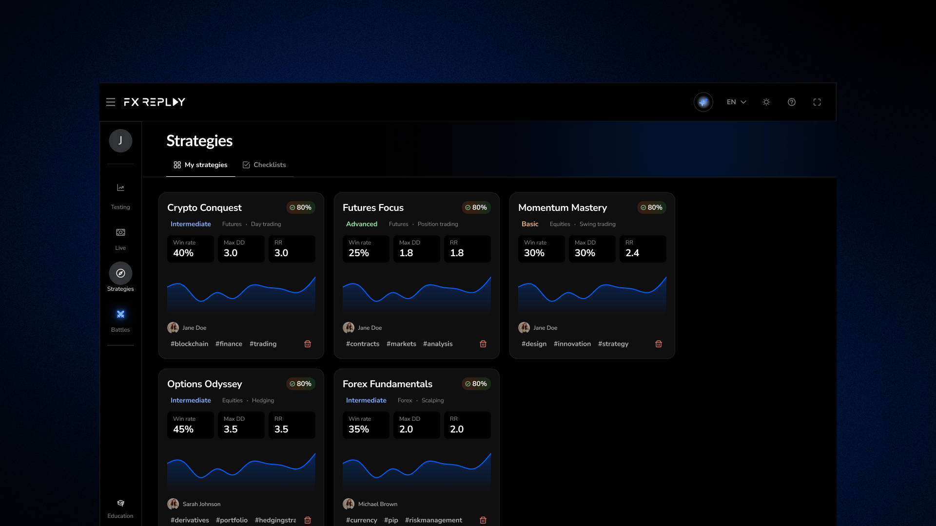Comece hoje mesmo sua jornada rumo a negociações lucrativas. Participe do FX Replay gratuitamente e desbloqueie um mundo de percepções e estratégias.